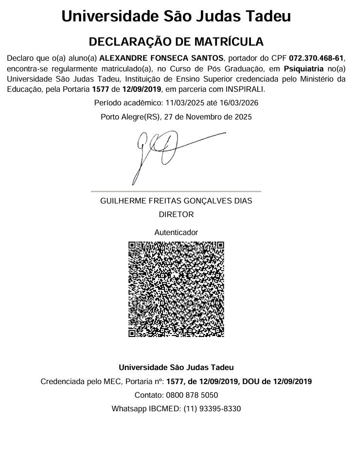 Sou médico clínico, professor universitário, há mais de 20 anos atuando na área de saúde mental, epidemiologia e clínica médica, em formação em psiquiatria e treinamento em cuidado de populações em situação precárias pelo Epicentre de Paris. Possuo ampla experiência nacional e internacional, tendo atuado em países como Rússia, Afeganistão, Síria, África do Sul, Zimbabwe entre outros, especialmente em áreas de conflitos armados e populações de refugiados.